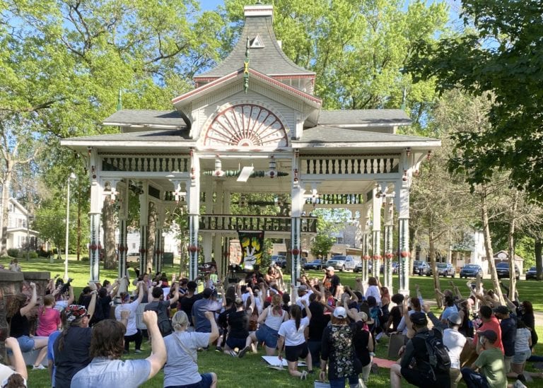 (Beaver Dam) About 150 people marched in support of Black Lives Matter in Beaver Dam on Saturday afternoon. Sparked by the death of George Floyd in Minneapolis, the group chanted and carried signs that read “A Badge Is Not A License To Kill” and “Humanity Over Politics.” The march began on North Spring Street near Industrial Drive and concluded on the other side of the city at Swan Park, where Amillian Styles of Beaver Dam was one of the speakers. Styles highlighted the struggles of the black community and called for unity and change.