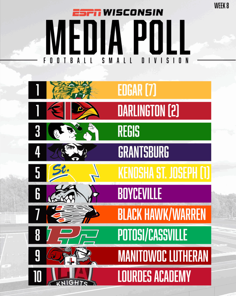 ESPN Wisconsin Media Football poll – Week 8 October 15, 2025October 14, 2025 by Daily Dodge If you have a question about this story or have an idea for a future local sports story, please email ddsports@goodkarmabrands.com