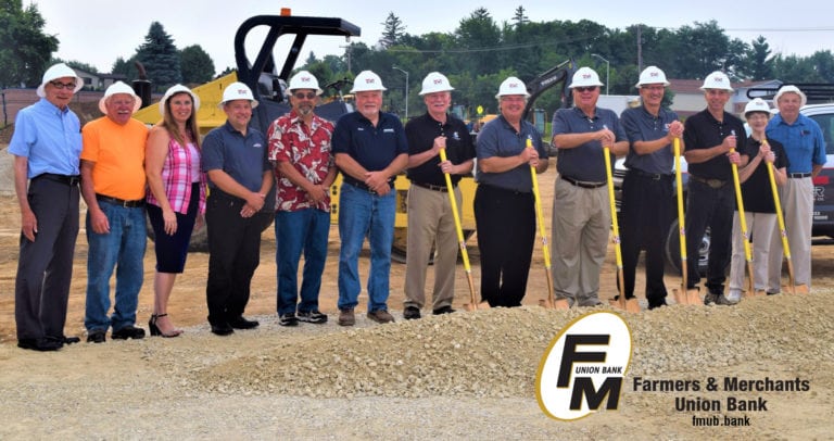 (Juneau) Ground was broke recently on a new bank in Juneau. The ceremony celebrated the start of construction for the new Farmers and Merchants Union Bank building. The 2,700-square-foot facility will be located at the intersection of Highway 26 and Western Avenue in Juneau, next to the Piggly Wiggly. Bank President Randy Bobholz says they have been committed to the Juneau community for many years, having been in their current location on Jewel Street since 2003. Bobholz says they have had plans to build a new bank building for a while, but the timing and the location had to be right, for the bank and for the Juneau community. He says they are excited by the location and the timing. The new facility will house a teller line, safe deposit box storage area and viewing room, office space and an interactive conference room. A drive-through, with a drive-up deposit-enabled ATM, will also be included in the new construction. Farmers and Merchants also serves Columbus, Fall River, Friesland and Rio. The new Juneau facility is anticipated to open in the spring of 2019.